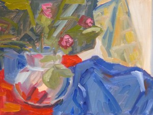 2021Stilleven met gekleurde roosjes en theepot.