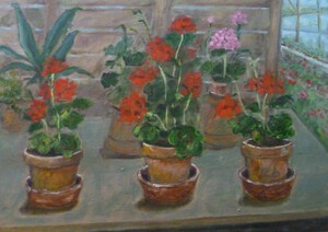2020Stilleven met geraniums in de Historische Tuin van Aalsmeer.