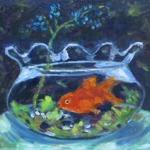 2020Stilleven met goudvisje in een kom.